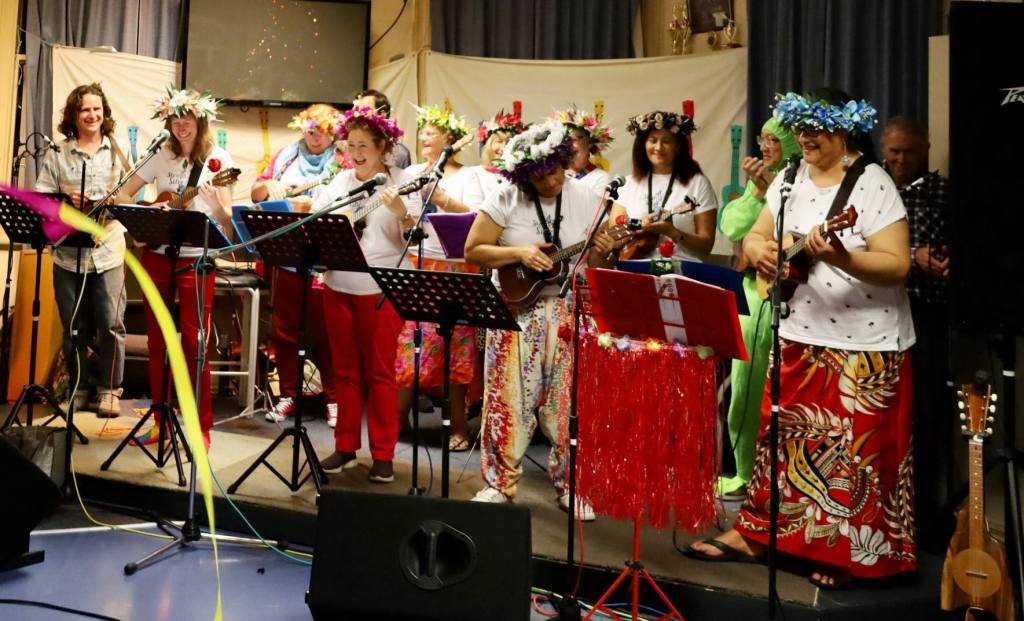 ukulele classes. This ensemble performs at community events of various natures and occasionally as a hire-band for functions.